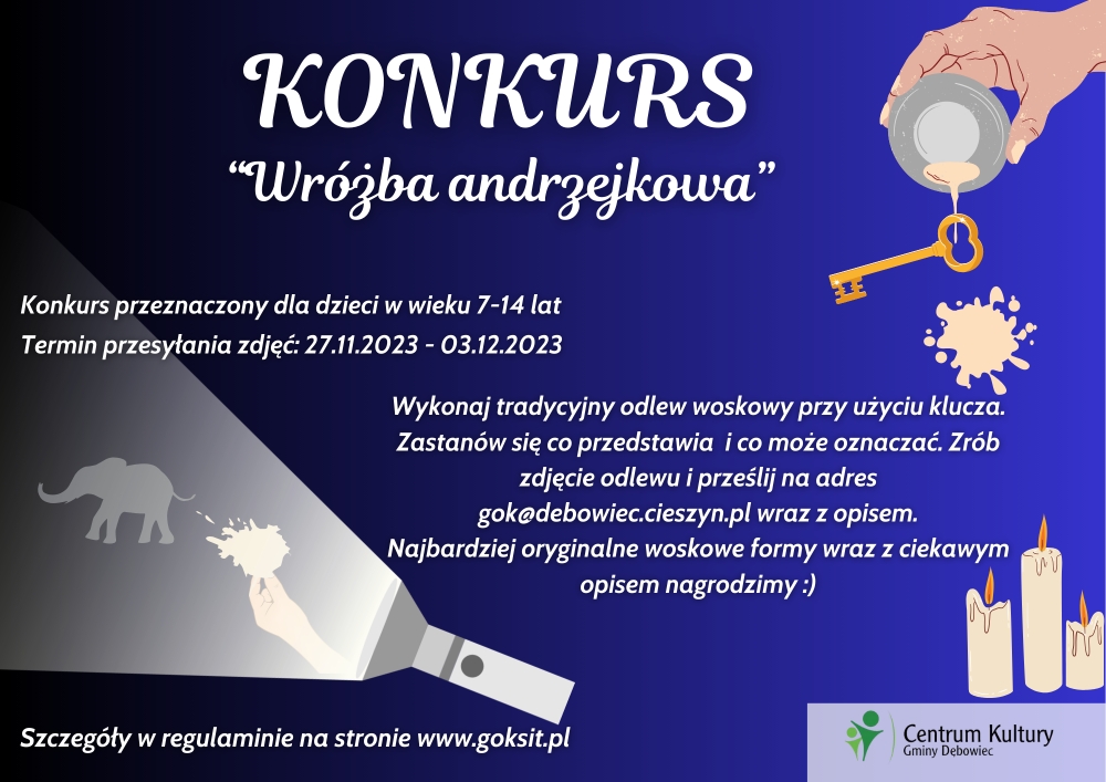 Regulamin konkursu dostępny pod linkiem https://goksit.pl/media/upload/2023/11/13/regulamin-konkursu-wrozba-andrzejkowa-2023.pdf
