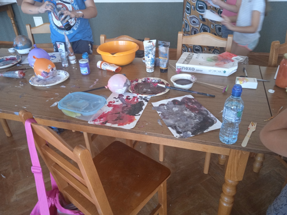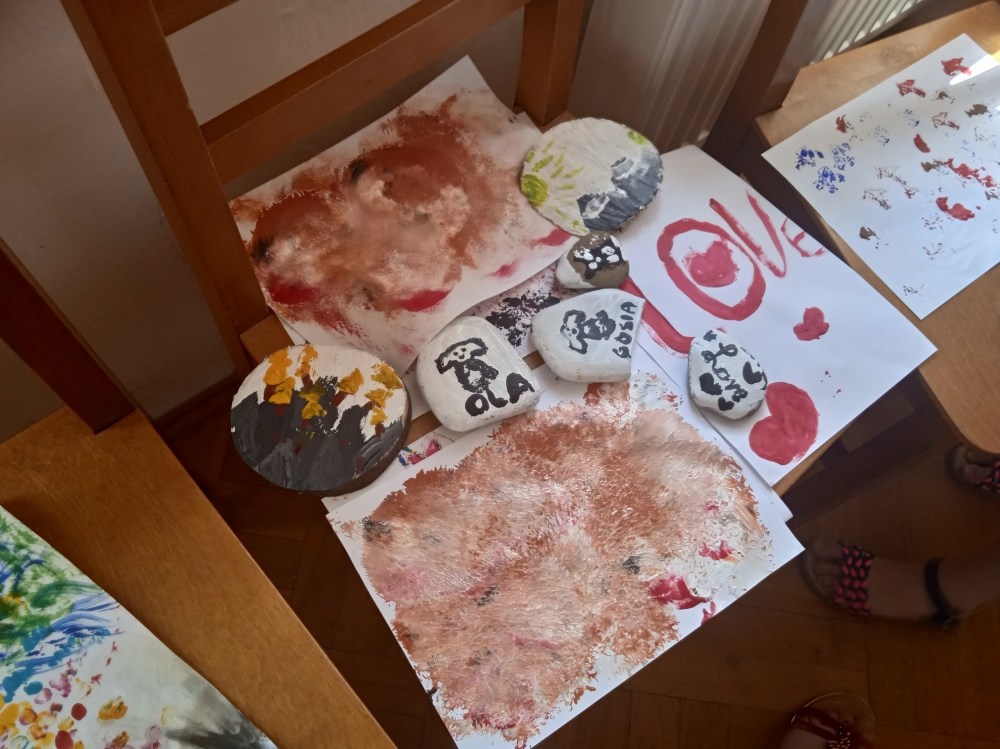 Dzieci bawiły się wspaniale, o czym mogły świadczyć plamy farb na ubraniach i nie tylko :)