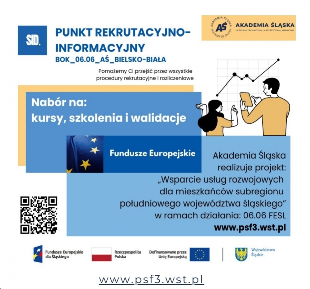 Akademia Śląska w partnerstwie z Cechem Rzemieślników i Innych Przedsiębiorców w Wodzisławiu Śląskim realizuje projekt: „Wsparcie usług rozwojowych dla mieszkańców subregionu południowego województwa śląskiego”.